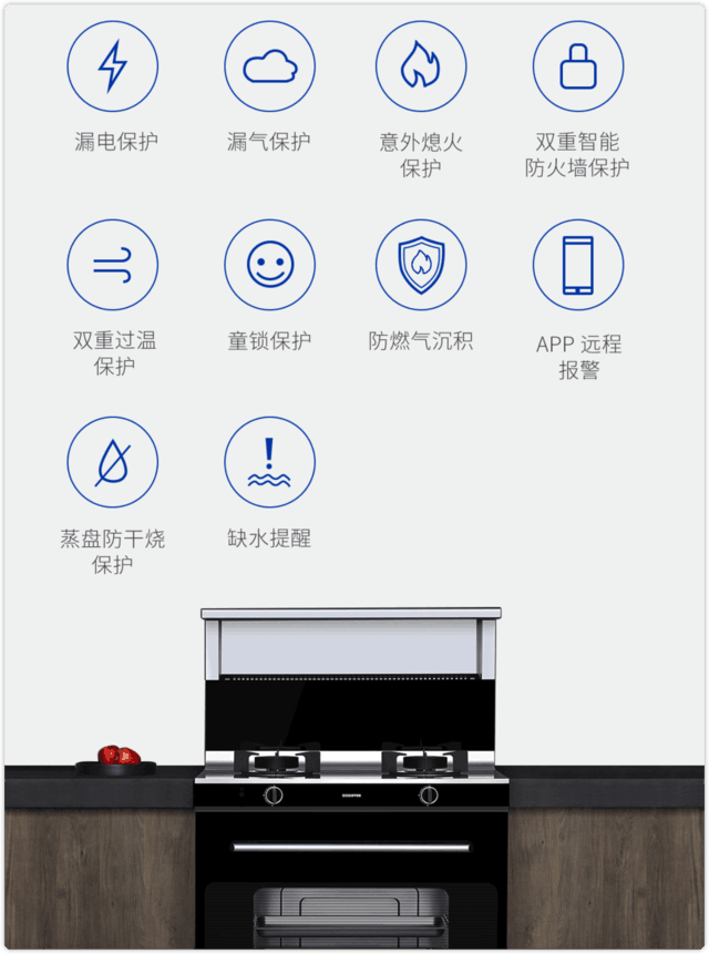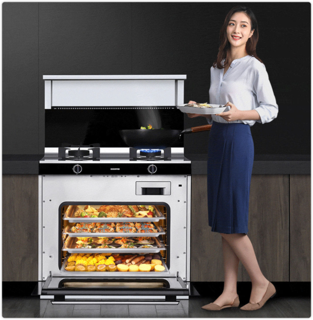 北斗星C2物联网蒸箱集成是一款提升效率、轻松烹饪的神器!它集成了油烟机、燃气灶、大蒸箱,还节省了一米台面、一米地柜。把烹饪、置物、吸烟、蒸箱、除菌、换气六合一,上炒下蒸,小白变大厨,轻松烹饪美食。