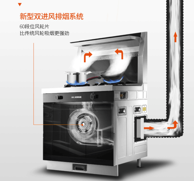 现在很多人的家庭将自家的传统抽油烟机换成了集成灶,原因就是集成灶的吸油烟效果好。市面上,一般的集成灶吸油率就能够达到95%,油烟吸净率越高,质量越好。科大K6集成灶其油烟机吸力高达18立方米/分钟,搭配侧吸下排技术,能够实现出色的吸油烟效果。