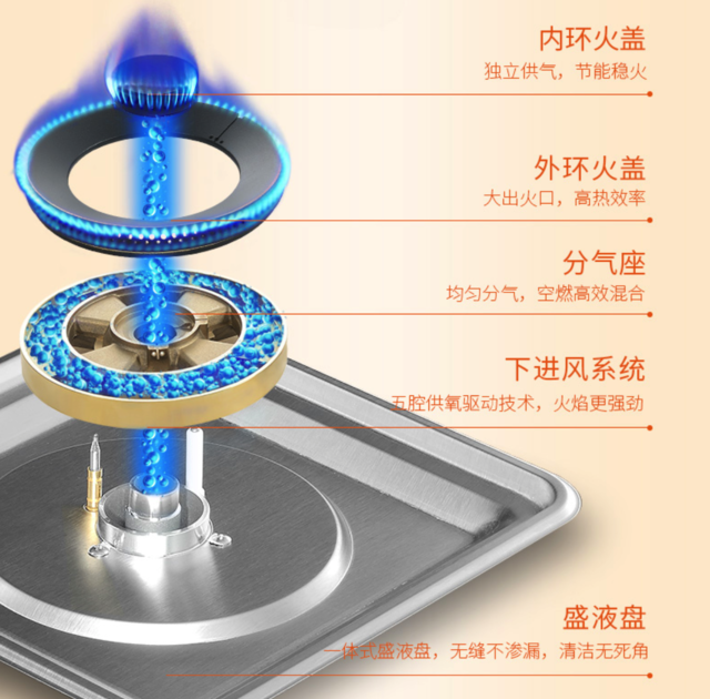 厨房烹饪的关键是火力,不仅仅影响着做饭的效率,更是影响烹饪的口感,中式烹饪中的“镬气”就一定需要大火力的支持。科大K6采用五腔供养上进风系统,火力更加强劲、内外双火盖,灶具的热效率更高,火焰更稳定。做饭时再也不用为了火力不合适而烦恼。