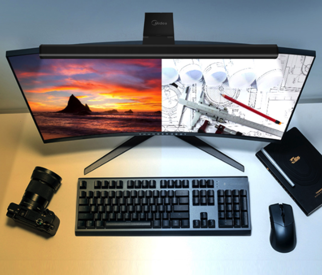美的护眼屏前灯采用优质铝材,散热性强,耐高温,不易变形,可夹曲面屏,也可夹平面屏,适用于厚度≤6.5cm,挂式安装,光效明亮,不占用桌面空间,给你照明新体验。